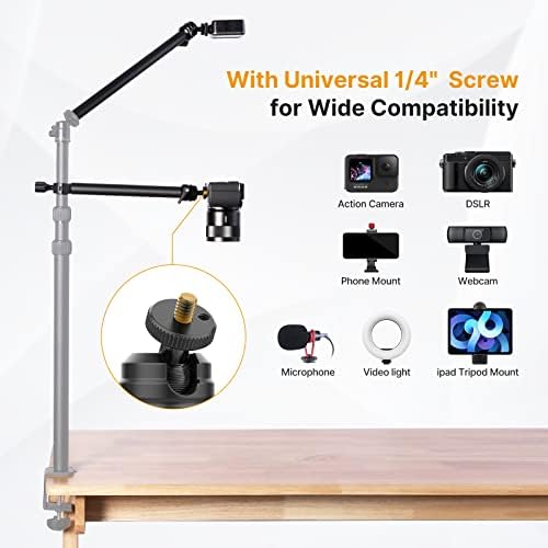 ▶【Premium Craftsmanship】Crafted of Aluminum and finished with high-quality black powder coating, this camera desk mount stand kit features sturdy metal texture and provides maximum stability.