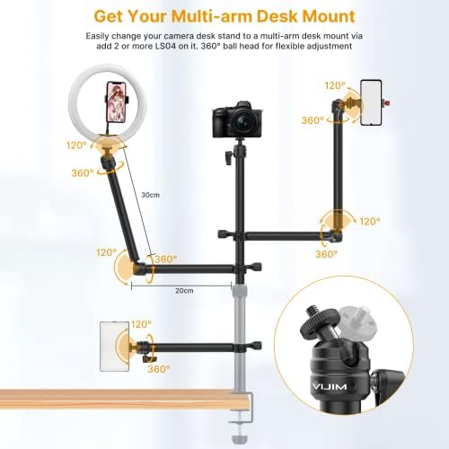 VIJIM LS04 Flexible Arm for Camera Desk Mount Stand, Detachable 2-Section Auxiliary Holding Magic Arm with C-Clamp Type, Mount Stand Accessory for DSLR Camera, Ring Light & Webcam