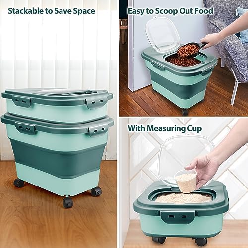 Viretec 5-20Lbs Dog Food Storage Container,Collapsible Pet Food Storage Containers with Rolling Wheel Airtight Locking Lid, Dry Food Storage Bin with Cup and Scoop,Suitable for Pet Food, Rice, Flour