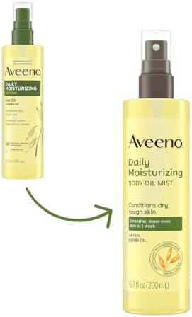 Visit the Aveeno Store Aveeno Daily Moisturizing Dry Body Oil Mist with Oat and Jojoba Oil for Dry Rough Sensitive Skin Nourishing & Hypoallergenic Body Spray Paraben- Silicone- & Phthalate-Free 6.7 fl. oz