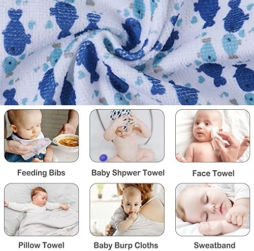 Viviland Baby Washcloths, Super Soft Baby Towels Care for Baby’s Sensitive Skin, 24 Pack Kids Body Wash Face Cloth for Baby Boy, Bath Towel for Newborn and Infants, Blue-Whale Pattern 9 x 9 inch