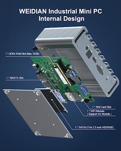 【Strong and Safe Storage】Our Home Router WEIDIAN Mini PC features a fanless design with an aluminum case, ensuring quiet and stable cooling. This Firewall Mini PC is eco-friendly and safe, making it great for office, business, and home use. With support for 1*DDR4 260Pin SODIMM (Max 16GB, 2400Mhz), 1*MSATA SSD, 1*SATA3.0 for 2.5inch HDD/SSD (Max 4TB), and 1*WIFI Module (4G module optional) and 1*SIM Slot, this energy-saving mini computer offers ample storage and connectivity options.