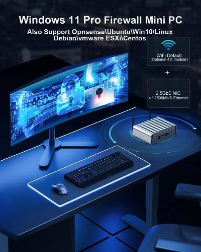 【Professional Firewall PC】Our Industrial Mini PC is an advanced and reliable computing solution designed specifically for firewall applications. Powered by a high-performance Celeron J4125 Processor (4M Cache, up to 2.70 GHz, UHD Graphics 600), this Mini Computer is pre-installed with Windows 11 Pro OS and supports a wide range of OS including Win10, Linux, Ubuntu, Opnsense, Debian, vmware ESXi, and Centos(Pre-installed OS can be specified). Perfect for designing firm Network firewalls.