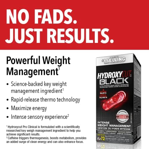 NEW! ULTRA ADVANCED FORMULA FROM NORTH AMERICA’S #1 SELLING WEIGHT MANAGEMENT BRAND -Introducing Hydroxycut Black – the latest in leading-edge sensory technology. Providing a scientifically researched, powerful weight management ingredient and an ingredient for elevated energy and sensory effects, this advanced formula will help you conquer your goals – no matter how demanding.