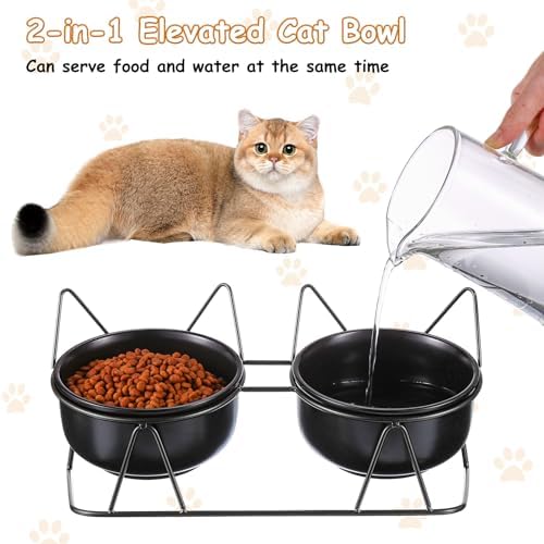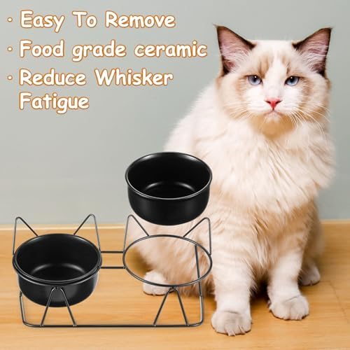 Sturdy & Durable: With the cute “cat ears”design in the stand, the cat bowls for indoor cats are made of ceramic and iron material, easy to remove, set up and very sturdy.