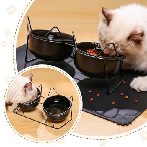 Weirui 2 Pack Raised Cat Bowl, Ceramic Pet Bowls with 15°Tilted Elevated Cat Food Bowl and for Cat Bowl Mat Indoor Cat Dishes Water Feeding Bowl Ant Proof with for Puppy Small Dog Kitten(Black)