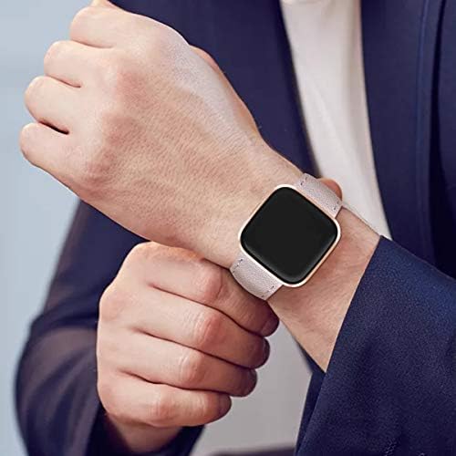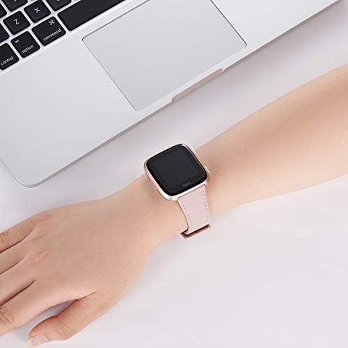 WFEAGL for Fitbit Versa 2 Bands Women Men, Top Grain Leather Band Replacement Strap for Fitbit Versa 2/Versa/Versa Lite/Versa SE Fitness Smart Watch(PinkSand Band+Gold Buckle)
