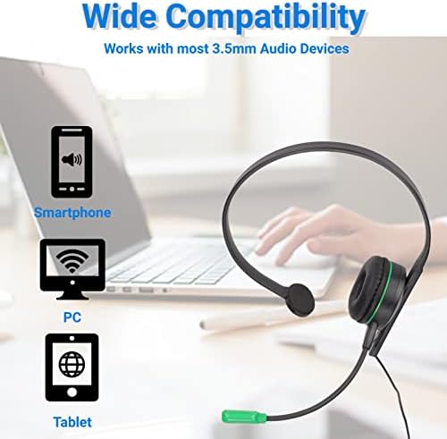Wired Headset, 3.5mm Single Ear Headphone Gaming Headset with Noise Cancelling Microphone for PC Computer Laptop Gaming, Plug and Play