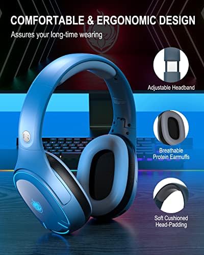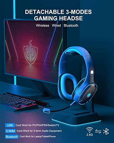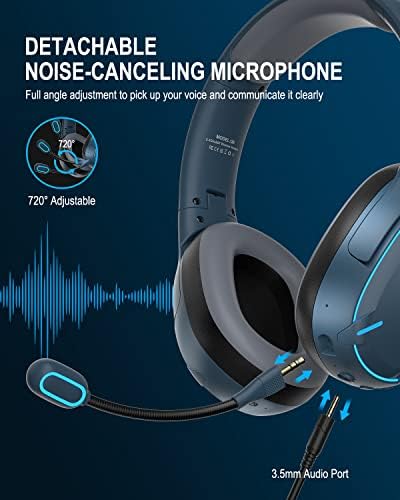 Wireless PS4 Headset for PS5 PC, Wireless Stereo Over Ear Headphones with Detachable Microphone, 3.5mm Wired Gaming Headset for PC PS4 PS5 Xbox One, 30H Playtime (Blue)