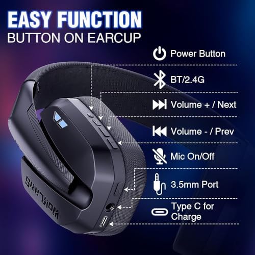 On-ear Function Control – With a delicate and convenient on-ear function control, the TA3000 wireless headphone for PS5 provides you with Power Button, BT/2.4G, Volume +/Next, Volume -/Prev, Mic On/Off, 3.5mm Port and Type-C Port for Charge. It enables you to control the headset with simplicity and mobility, without distracting you from your games.