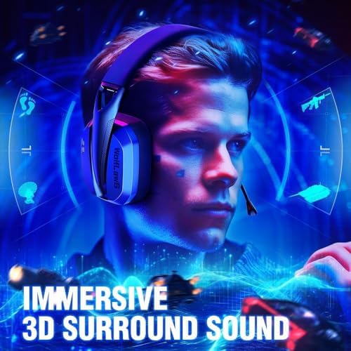 WolfLawS TA3000 Wireless Gaming Headset for PC, Gaming Headphones, Bluetooth Headset with Detachable and Built-in Mics, Noise Isolation, Low Latency, Lightweight-Black