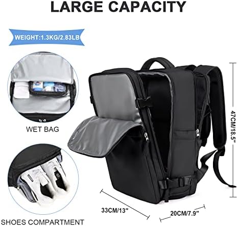 Women Carry on Travel Backpack Hiking Backpack Waterproof Outdoor Casual Daypack with USB Charging Port Shoes Compartment