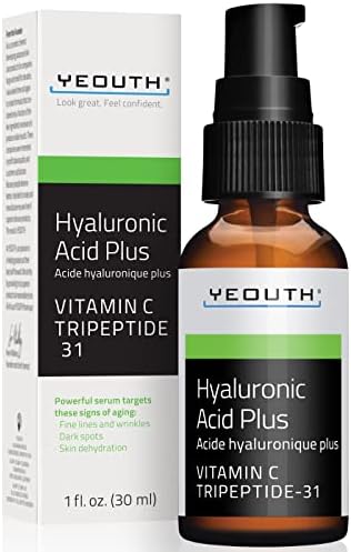 YEOUTH Hyaluronic Acid Serum for Face with Vitamin C, Hydrating Serum with Tripeptide, Skin Care Product, Acide Hyaluronique Serum Visage, Facial Serum for Women & Men 1oz