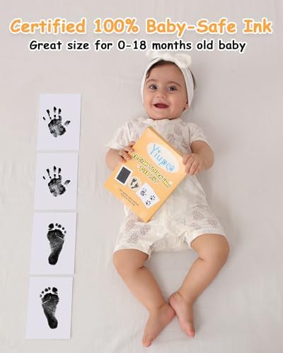 Yiupea Baby Hand and Footprints Clean-Touch Ink Pad Large Size Kit,Baby Newborn Keepsake with 1 Hello World Newborn Sign,4 Impression Cards,No Mess Dog Paw Print,Gifts for New Moms