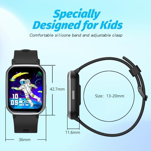 【24 HOURS NON-STOP HEALTH TRACKING】Uses high-performance optical sensors to act as a fitness tracker in a timely and accurate manner, recording your child’s daily walking steps, distance and calories, continuously monitoring their heart rate and sleep quality. Then show detailed data to help them build up a good lifestyle.