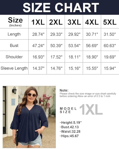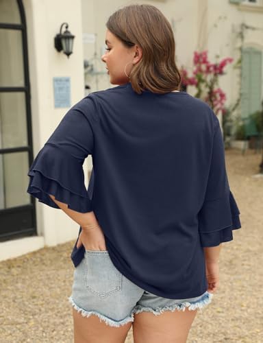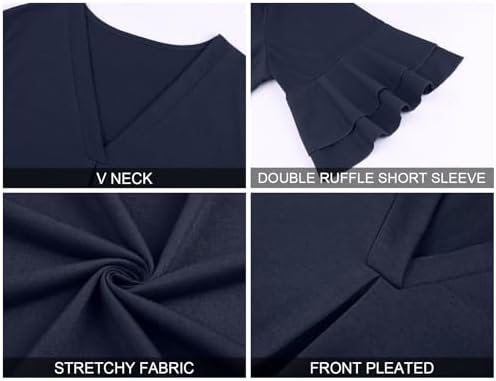 Zamowoty Plus Size Tops for Women V Neck Double Ruffle Short Sleeve Casual Summer Tops Blouse Loose Fit Tee Shirts(1X-5X)