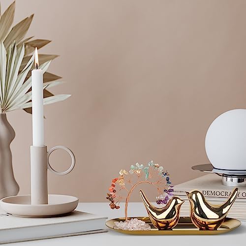Material of the Decorative Ornaments set:Small Birds Statues are made by Ceramics, Smooth finish with elegantly detailed brings you a excellent visual enjoyment.Gold Stainless Steel Metal Food Grade Storage Plate Dish.Mirror polishing process, no worries about it damaging the surface that it sits on.Natural Agate Power Crystals Stones Tree.