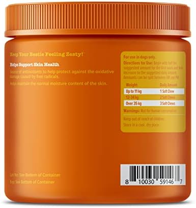 Zesty Paws Omega Soft Chews for Dogs – Helps Support Skin Health – Fish Oil with Omega 3 for Skin Health – Vitamin C & Vitamin E Antioxidants -Chicken Flavour – 90 Count