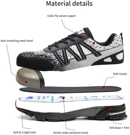 ziitop Steel Toe Mens Safety Work Shoes Indestructible Lightweight Breathable Mesh Safety Shoes Industrial Construction Sneakers for Men