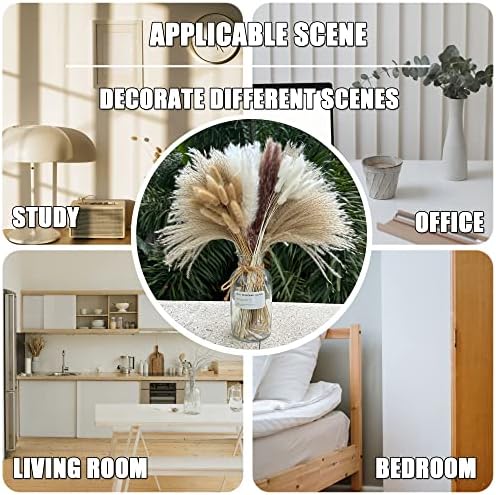 【Package of 140 Pieces】: The package contains 5 kinds of 140pcs different natural dried pampas grass flowers, with a total length of 17 inches. Can be cut to length to decorate your pampas vase.