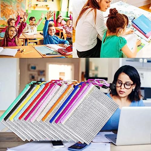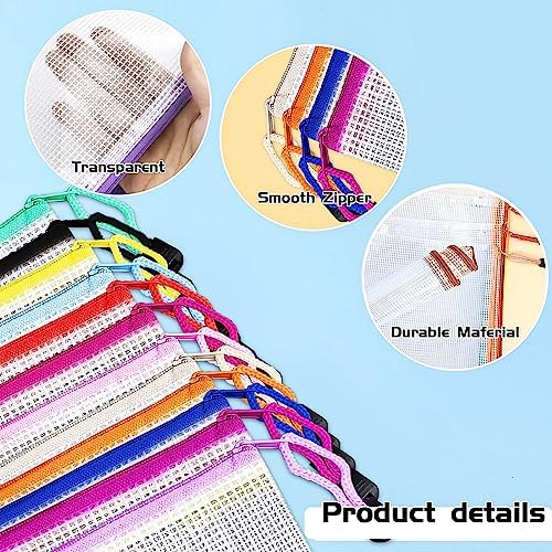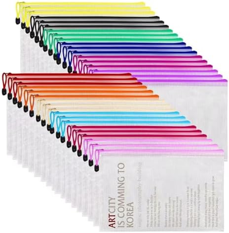 Package Includes:You will receive 36pcs mesh zip bags in 12 different colours, 3pcs of each colour, which can meet your storage needs for different categories; Each measures approximately 9.4 x 13.4 inches, suitable for storing A4 letter size or smaller papers.