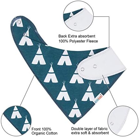 Soft & Absorbent Material-Our baby bandana drool bibs front are 100% soft organic cotton and 100% soft polyester included BPA Free, Phthalate Free, Latex Free, Lead Free on the back for added absorbency. The absorbent bandana bib is perfect for any teething baby, keeping your drooling and teething baby dry longer all the day.