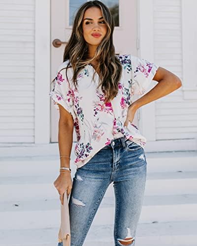 AOISAGULA Women’s Summer Blouse Casual Short Sleeve Tops V Neck Shirt Loose Tunic Lightweight for Ladies
