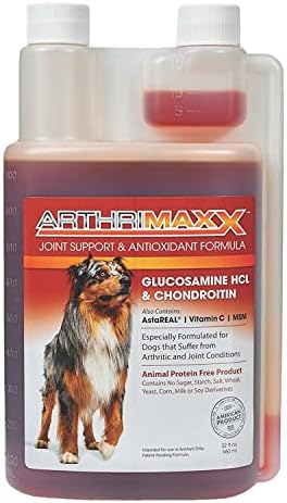 Liquid Joint Supplement for Dogs: Canines who suffer from arthritis or lameness problems live a better quality of life with ArthriMAXX joint formula; all breeds and sizes can benefit from the robust, all natural, proprietary anti-inflammatory properties of astaxanthin by AstaREAL