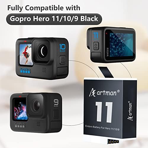 Artman Enduro Battery 3-Pack for Gopro Hero 12 Black, Hero 11 Black, Hero 10 Black, Hero 9 Black with 3-Channel USB Intelligent Charger (Fully Compatible with Gopro Hero 12/11/10/9 Battery Charger)