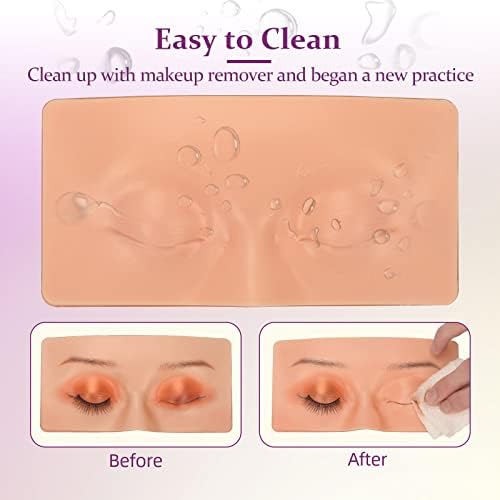 ATOMUS 3D Silicone Eye Face Makeup Practice Board with Brush Reusable Perfect Aid to Practicing Eye Makeup Eyebrow Eyeliner Eye Shadow Eyelash Extension Training (Closed-eye Style)