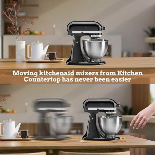 Bamboo Sliding Mat for Kitchenaid Mixer, Mixer Mover Slider Mat Pad Compatible with Kitchenaid 4.5-5 Qt Tilt-Head Stand Mixer,Kitchen Appliance Slider Mat, Kitchen Aid Mixer Accessories,with Handle