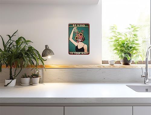 Be Kind to Your Mind Retro Metal Signs Funky Hippie Boho Room Decor Gift for Lady Woman Plant Lovers Home Bedroom Cafes Wall Art Sign 12 x 8 Inch