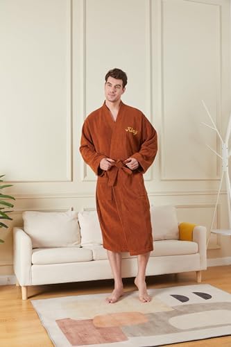 Bnbrez 100% Terry Cotton Soft Kimono Bathrobe Lightweight Nightgown for Women V Neck Hotel Spa Robes M Brown