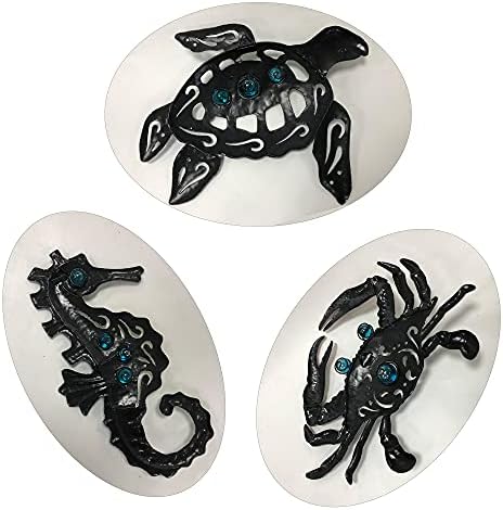 BVLFOOK Metal Sea Turtle Seahorse Crab Beach Themed Bathroom Wall Art Decor, Ocean Themed Wall Decorations for Home Bathroom,10 Inch, Set of 3