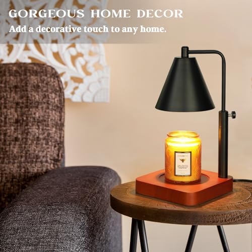 【Timer&Dimmable Controller】This candle warming lamp with timer is dimmable and has 1/2/4 hours shut-off function. It is easy to use and the candle wax will be evenly melts in minutes. There is four dimming settings for meets different ambiance needs. The brighter you set, the faster candles melts. The wood base is large enough to hold large candle or different sizes candles. And the post is height adjustable for most sizes of candle.