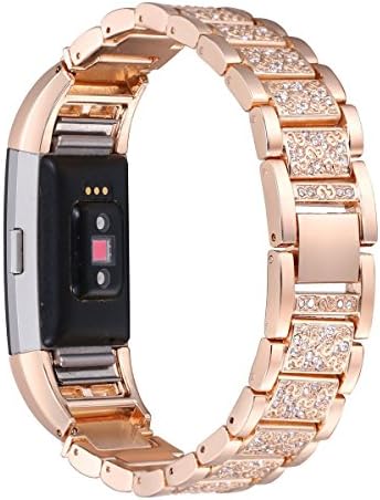 Compatible with Fitbit Charge 2 Smartwatch Metal Bands for Women Girl, Adjustable Crystal Wristband with Tools Stainless Steel Rhinestone Bracelet Strap for Charge 2 Smartwatch
