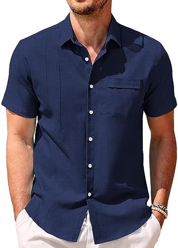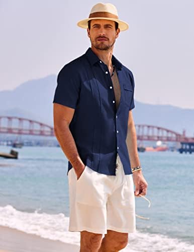 COOFANDY Men Linen Shirts Cuban Guayabera Shirts Short Sleeve Button Down Shirts Beach Summer Shirts