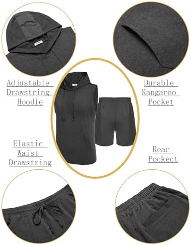 COOFANDY Men’s Workout Hooded Tank Tops Sleeveless Gym Shirt Sweat Shorts Hoodie Set 2 Piece Outfits Jogging Suits#