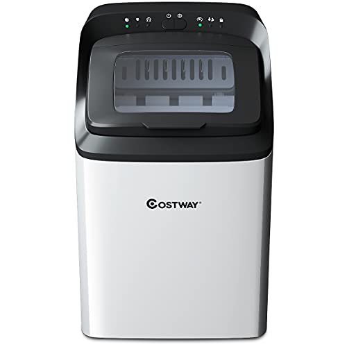 COSTWAY Countertop Ice Maker, 33LBS/24H Portable and Compact Ice Machine with Self-cleaning Function, Bullet Ice Cubes Ready in 7 Mins, Include Ice Scoop and Basket, Soinc Ice Maker for Indoor Use, RV