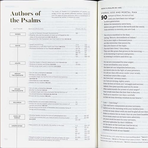 In addition to beautiful Bible text, you’ll discover more than 150 key charts, timelines, maps, and infographics that carefully organize biblical truths to highlight connections often missed while reading. And because Scripture itself is the best interpreter of Scripture, the reading plans for each book include relevant supplemental passages from other parts of God’s Word.