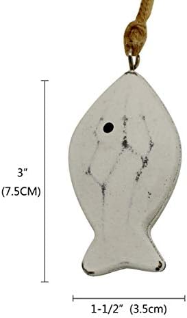 CVHOMEDECO. 3 Inches Hand Carved Wood Fish Hanging with Jute Rope Nautical Decorated, Mediterranean Style for Wall Hanging Gift Crafts, White, 8 pcs/Set (Fish)