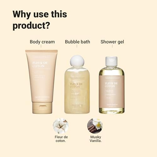DANS UN JARDIN – Bodycare Set for Women Made in Canada – Cotton Flower Fragrance – Body Cream, Bubble Bath & Shower Gel – Beauty Gift Set for Women – Gentle on the Skin – Vegan Products – 3 Pack