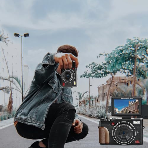 【4K Digital Camera with Flip Screen】:The digital camera uses the latest CMOS measurement system to capture high-definition 4K videos and 48MP photos, without the need for complex manual settings, while automatically providing natural color images. Cameras for photography has a 3-inch touch screen and can rotate 180 degrees, allowing you to see what’s being recorded or view it while taking a vlog from any angle.