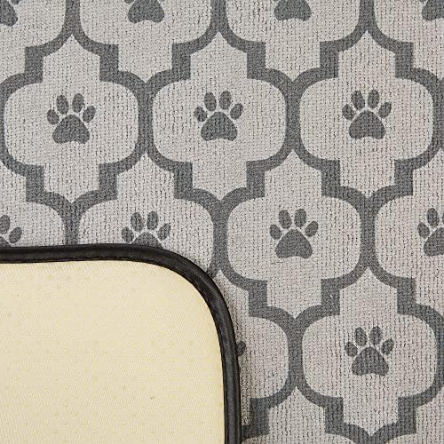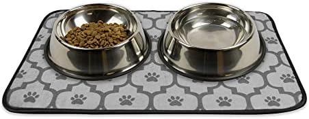 DII Bone Dry Small Microfiber Pet Mat for Food, Water, Treats, 12×18, Ultra-Absorbent & Machine Washable Food Mat for Dogs and Cats-Gray Lattice Paw