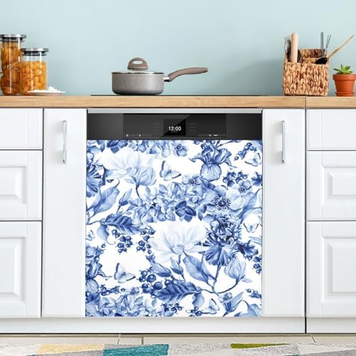 Dishwasher Magnet Cover Dishwasher Front Panel Covers Decorative Magnetic Appliance Cover Kitchen Decor Home Cabinet Decals Refrigerator Magnetic Sticker 23″ W x 26″ H Blue and White