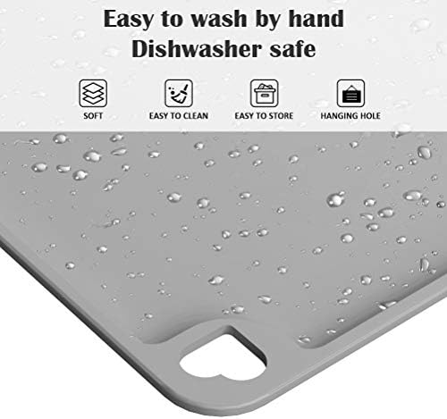 Food Level Silicone food mat.Perfect for any liveable space; great for tiled, carpeted or hardwood floors.Simple design & basic color to mix into any decor.Lightweight & flexibility for simple cleansing & storage.Waterproof, anti-slip, non-toxic, non-allergenic, cold-resistant and heat-resistant.Easy to clean–rinse into the sink with warm soapy water or run it through dishwasher.100% dishwasher safe.