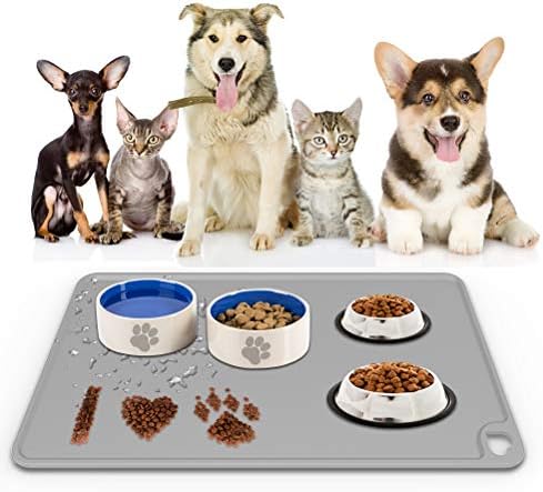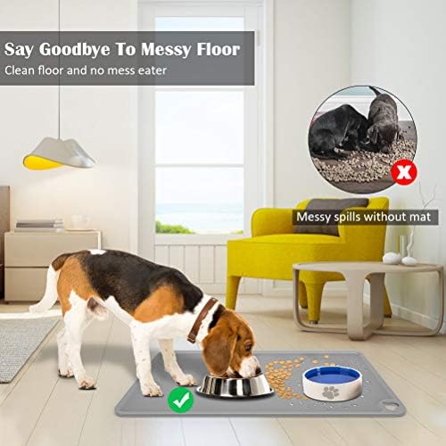 Dog Food Mat, FAYOGOO Small 19″ L x 12″ W Food Feeding Silicone Non Slip Waterproof Pet Bowl Mat for Puppy Kitty Dog Cat Small Medium Large Animals (Darkgray)
