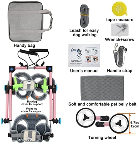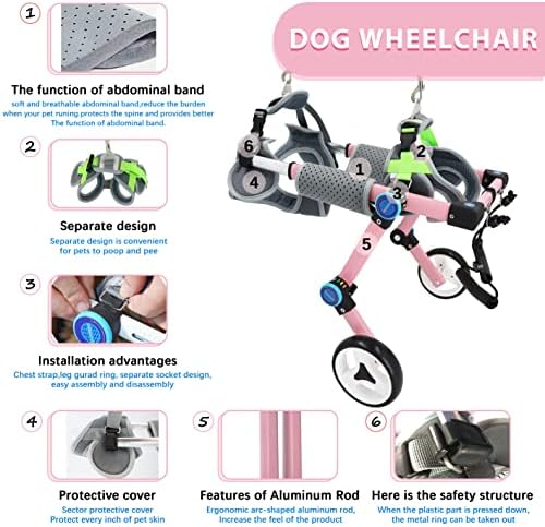 Dog Wheelchair,Fordable Dog Wheelchair for Back Legs,Assist Small Pets with Paralyzed Hind Limbs to Recover Their Mobility Two Colour 5-Size (XSLW Pink)