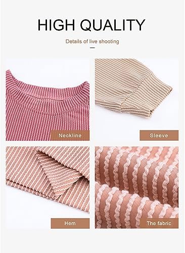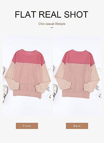 Dokotoo Womens Fashion 2023 Color Block Ribbed Long Sleeve Crewneck Pullover Shirts Tops