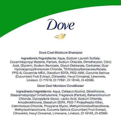 Get soft, smooth and beautiful hair with Dove Nourishing Rituals Cool Moisture Shampoo & Conditioner. Nourishing your locks from root to tip, this moisturizing shampoo and conditioner combination is formulated with our Nutritive Serum to lock in essential moisture without weighing hair down. Designed for dry hair, Dove Nourishing Rituals Cool Moisture Shampoo & Conditioner progressively nourishes your hair over time, protecting it from dryness. With the soothing scent of cucumber and green tea, it’s as calming as it is moisturizing. To use, gently massage Dove Nourishing Rituals Cool Moisture Shampoo into wet hair, working into a rich lather, then rinse. Follow with Dove Nourishing Rituals Cool Moisture Conditioner, doing the same with a focus on the mid-lengths and ends, then rinse. When it comes to washing your hair in the shower, cool off and turn down the temperature, washing your hair using warm water rather than hot. If the water is very hot, it can actually dry out your hair further, leading to dry ends. Dove does not test on animals, and for the last 30 years, Dove has used alternative non-animal methods to test product safety. Certified cruelty-free by PETA, the packaging of this Dove Shampoo carries its Beauty Without Bunnies logo.